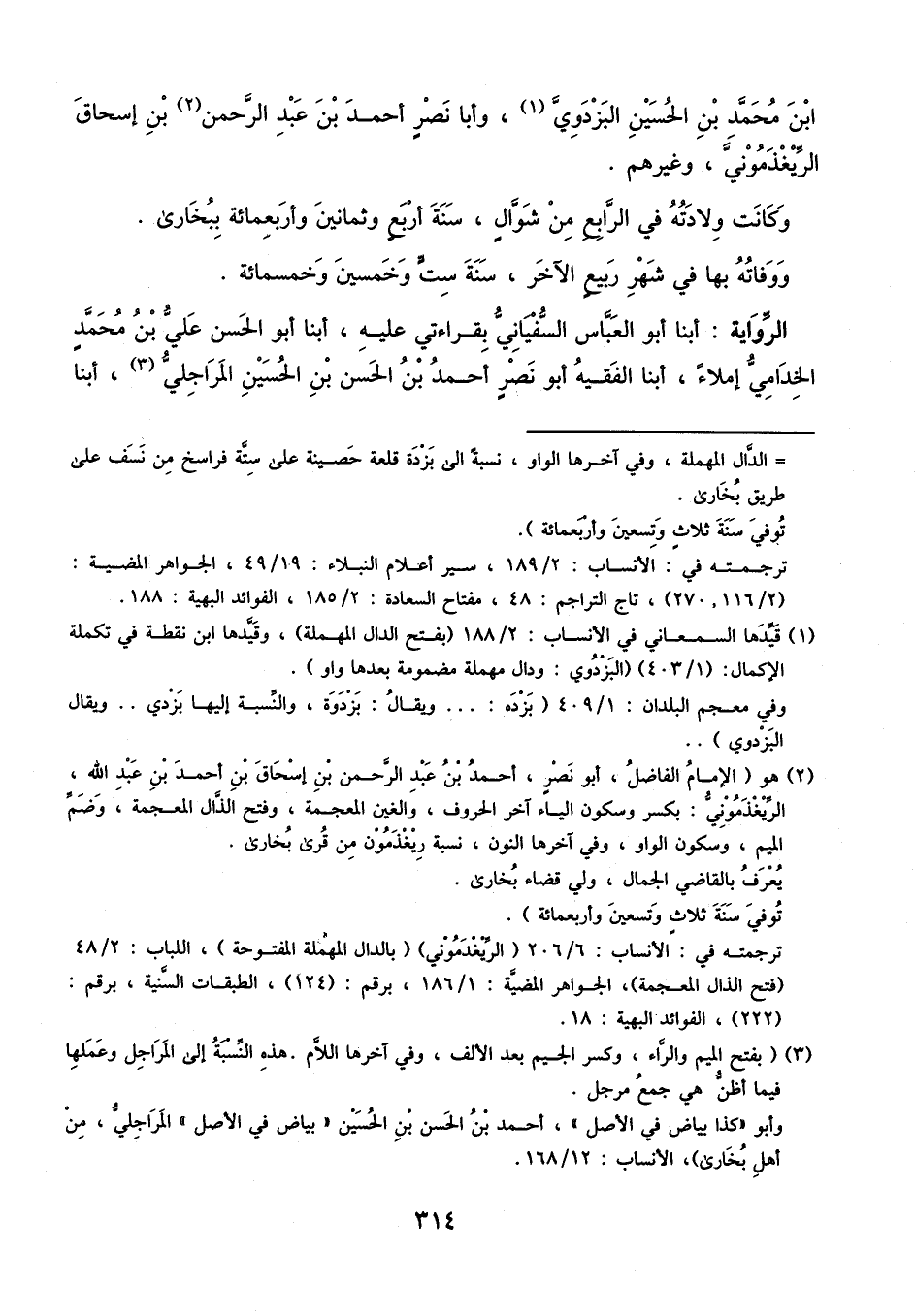 بن محمد بن الحسين البزدوي، وأبا نصر أحمد بن عبد الرحمن بن إسحاق الريغذموني، وغيرهم.