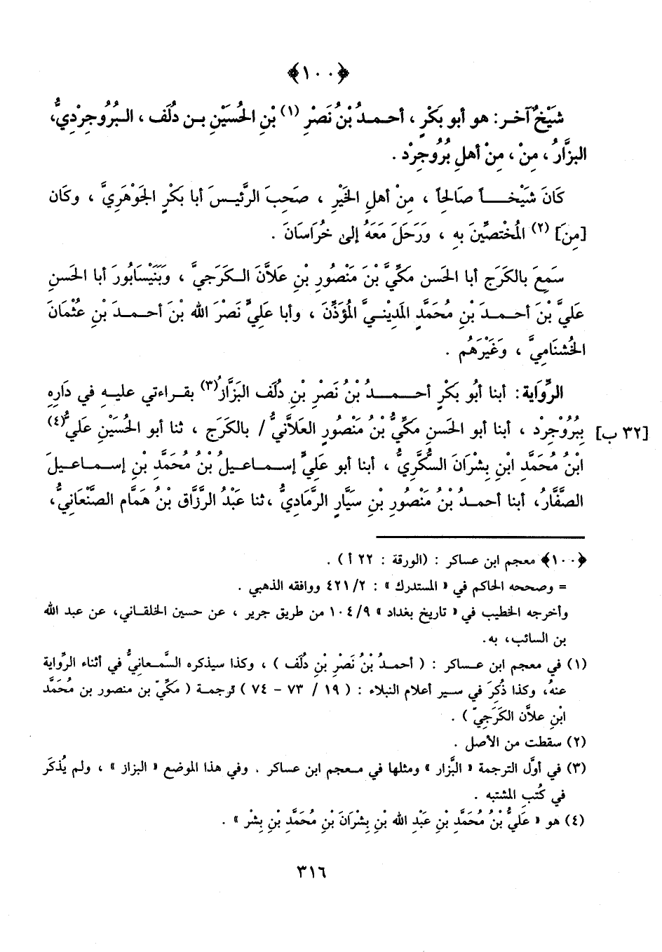 شيخ آخر: هو أبو بكر أحمد بن نصر بن الحسين بن دلف البروجردي البزار، من أهل بروجرد.