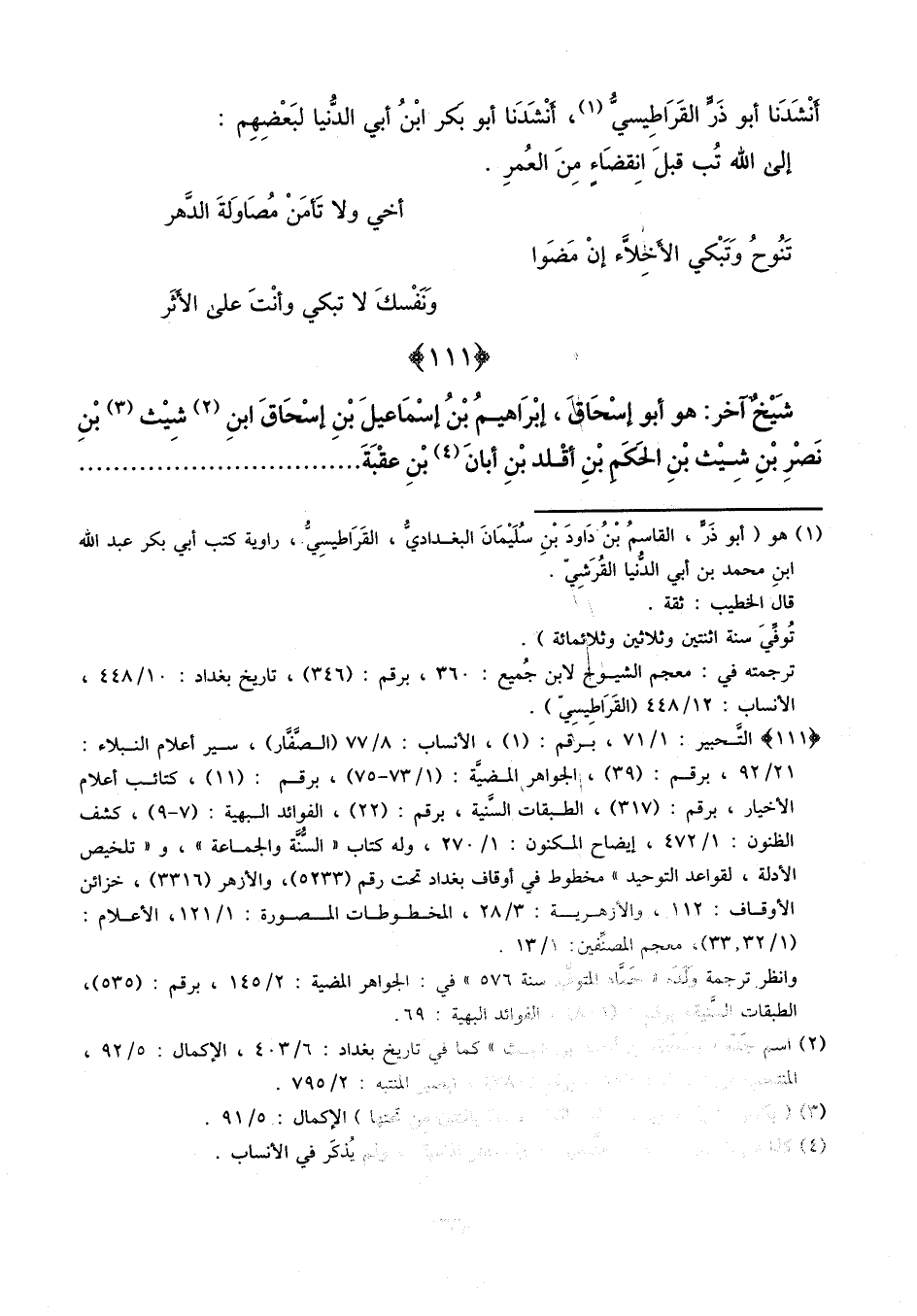شيخ آخر: هو أبو إسحاق إبراهيم بن إسماعيل بن إسحاق بن شيث بن نصر بن شيث بن الكم بن أقلد بن أبان بن عقبة. . . . . . . . . . . .