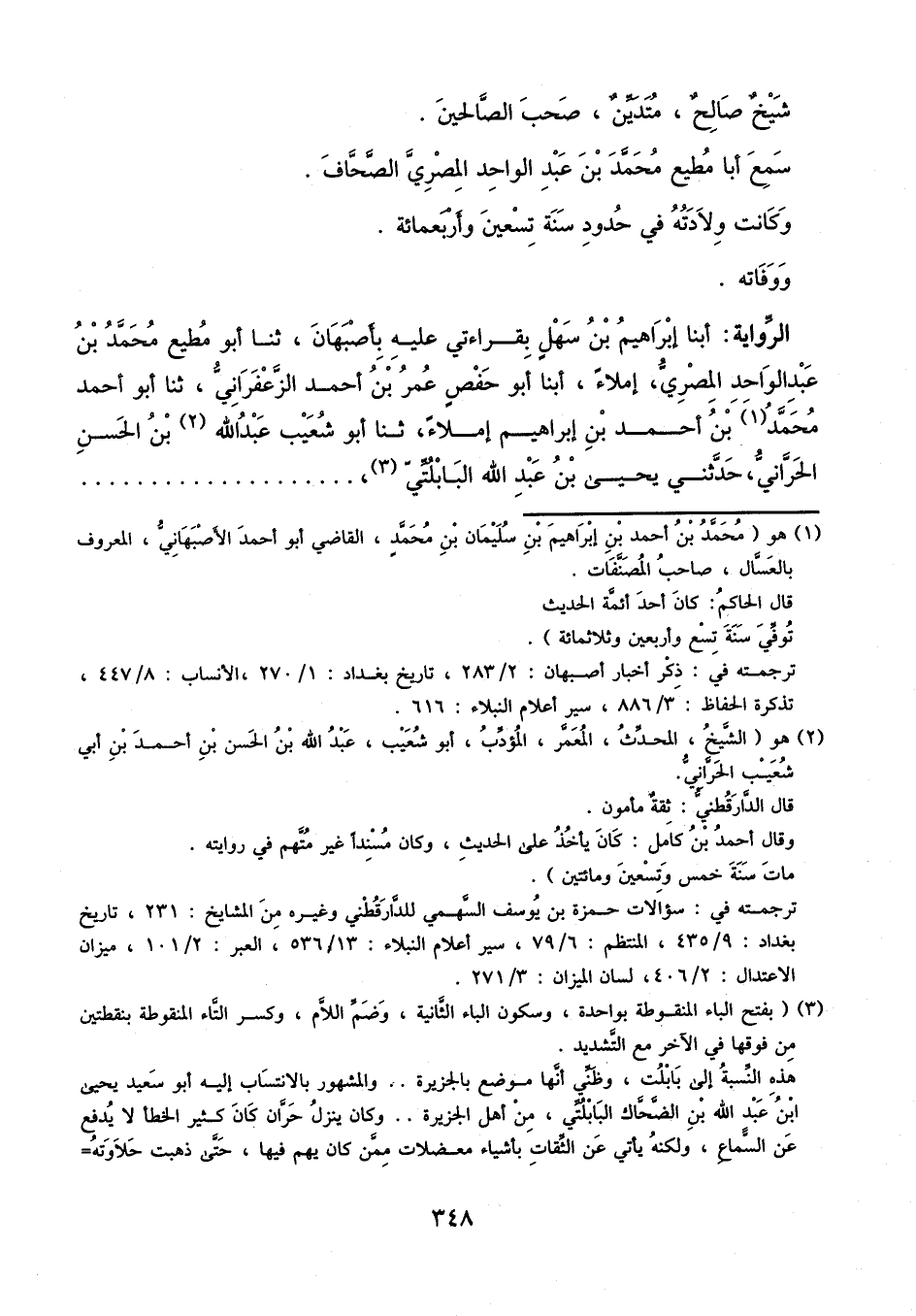 أَبْنَا إِبْرَاهِيمُ بْنُ سَهْلٍ، بِقِرَاءَتِي عَلَيْهِ بِأَصْبَهَانَ، ثَنَا أَبُو مُطِيعٍ مُحَمَّدُ بْنُ عَبْدِ الْوَاحِدِ الْمِصْرِيُّ إِمْلاءً، أَبْنَا أَبُو حَفْصٍ عُمَرُ بْنُ أَحْمَدَ الزَّعْفَرَانِيُّ، ثنا أَبُو أَحْمَدَ مُحَمَّدُ بْنُ أَحْمَدَ بْنِ إِبْرَاهِيمَ، إِمْلاءً، ثنا أَبُو شُعَيْبٍ عَبْدُ اللَّهِ بْنُ الْحَسَنِ الْحَرَّانِيُّ، حَدَّثَنِي يَحْيَى بْنُ عَبْدِ اللَّهِ الْبَابْلُتِّيُّ،