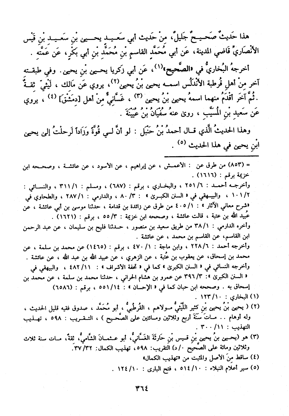أَخْرَجَهُ الْبُخَارِيُّ فِي الصَّحِيحِ، عَنْ أَبِي زَكَرِيَّا يَحْيَى بْنِ يَحْيَى، وَفِي طَبَقَتِهِ آخَرُ مِنْ أَهْلِ قُرْطُبَةَ الأَنْدَلُسِ، وَاسْمُهُ يَحْيَى بْنُ يَحْيَى، وَيَرْوِي عَنْ مَالِكٍ، لَيْثِيٌّ ثِقَةٌ، ثُمَّ آخَرُ أَقْدَمُ مِنْهُمَا اسْمُهُ يَحْيَى بْنُ يَحْيَى غَسَّانِيٌّ مِنْ أَهْلِ دِمَشْقَ، يَرْوِي عَنْ سَعِيدِ بْنِ الْمُسَيِّبِ، رَوَى عَنْهُ سُفْيَانُ بْنُ عُيَيْنَةَ.