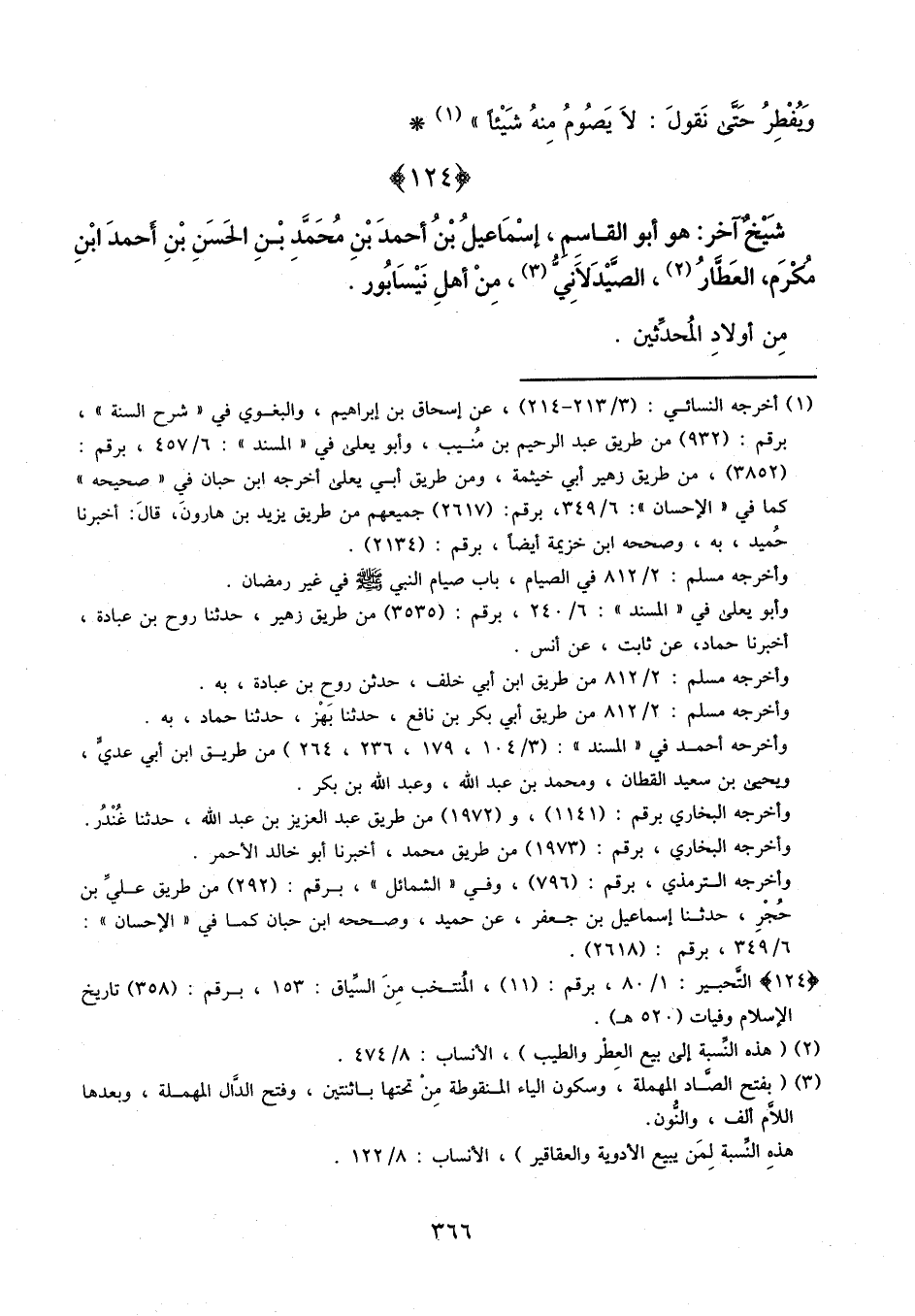 شيخ آخر: هو أبو القاسم إسماعيل بن أحمد بن محمد بن الحسن بن أحمد بن مكرم العطار الصيدلاني، من أهل نيسابور.