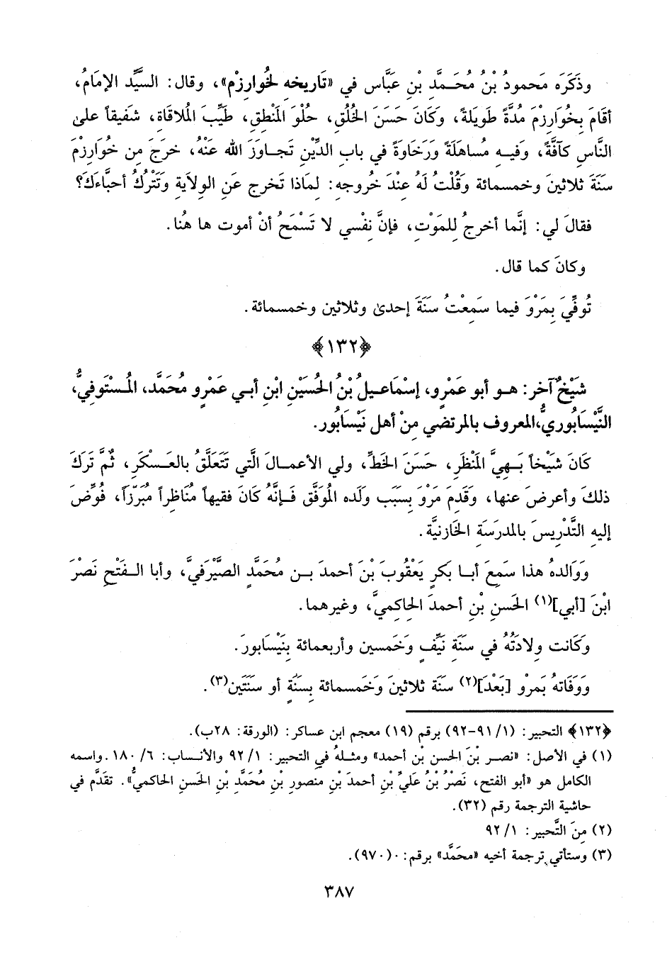 شيخ آخر: هو أبو عمرو إسماعيل بن الحسين بن أبي عمرو محمد المستوفي النيسابوري، المعروف بالمرتضي، من أهل نيسابور.