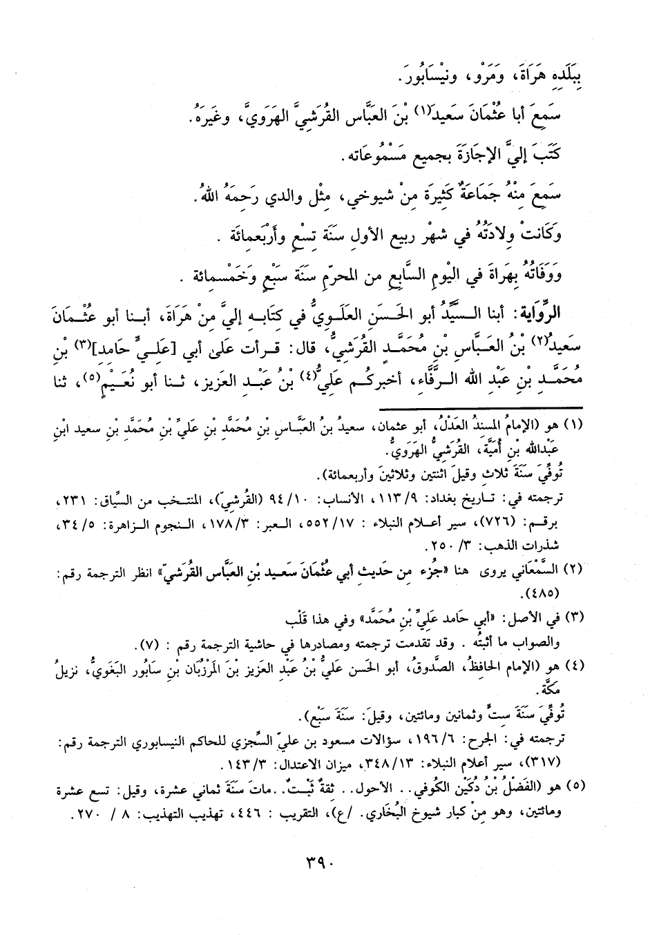 أَبْنَا السَّيِّدُ أَبُو الْحَسَنِ الْعَلَوِيُّ فِي كِتَابِهِ إِلَيَّ مِنْ هَرَاةَ، أَبْنَا أَبُو عُثْمَانَ سَعِيدُ بْنُ الْعَبَّاسِ بْنِ مُحَمَّدٍ الْقُرَشِيُّ، قَالَ: قَرَأْتُ عَلَى أَبِي عَلِيٍّ حَامِدِ بْنِ مُحَمَّدِ بْنِ عَبْدِ اللَّهِ الرَّفَّاءِ، أَخْبَرَكُمْ عَلِيُّ بْنُ عَبْدِ الْعَزِيزِ، ثَنَا أَبُو نُعَيْمٍ، ثَنَا