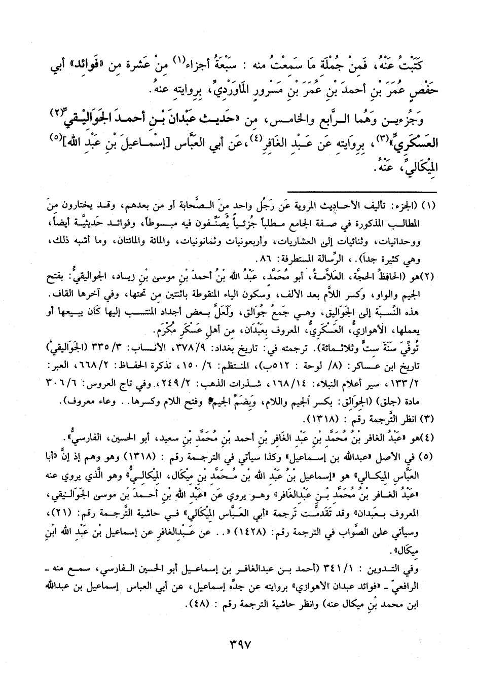 وجزأين وهما الرابع والخامس، من حديث عبدان بن أحمد الجواليقي العسكري، بروايته عن عبد الغافر، عن أبي العباس إسماعيل بن عبد الله الميكالي عنه.