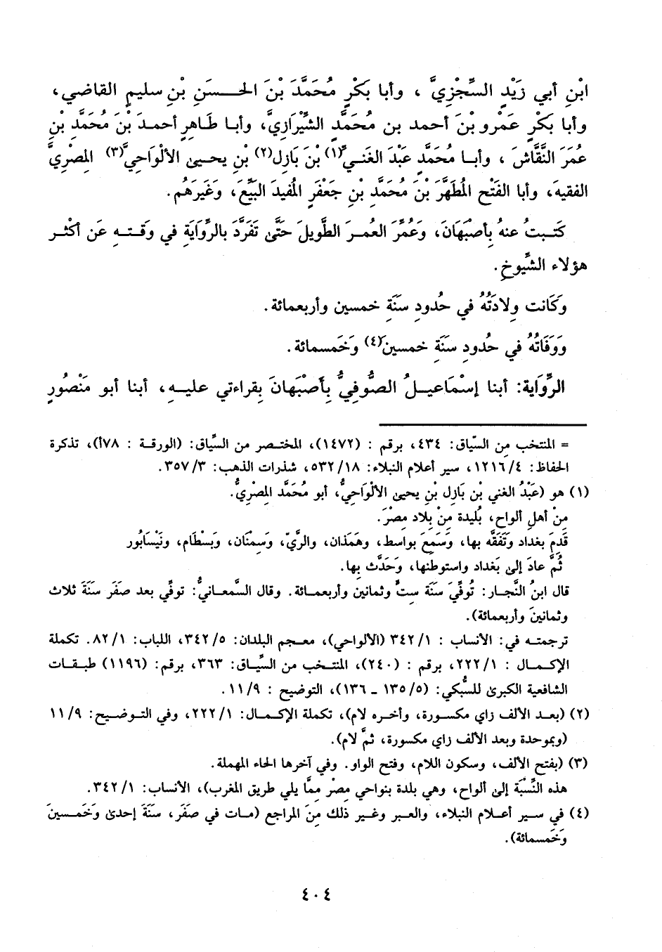 كتبت عنه بأصبهان، وعمر العمر الطويل، حتى تفرد بالرواية في وقته، عن أكثر هؤلاء الشيوخ.