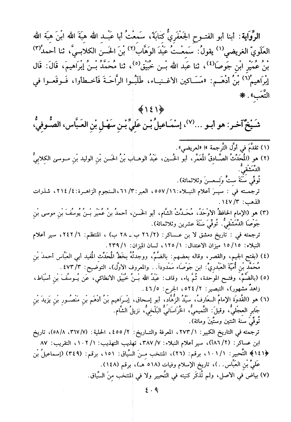 شيخ آخر: هو أبو. . . . إسماعيل بن علي بن سهل بن العباس الصوفي
