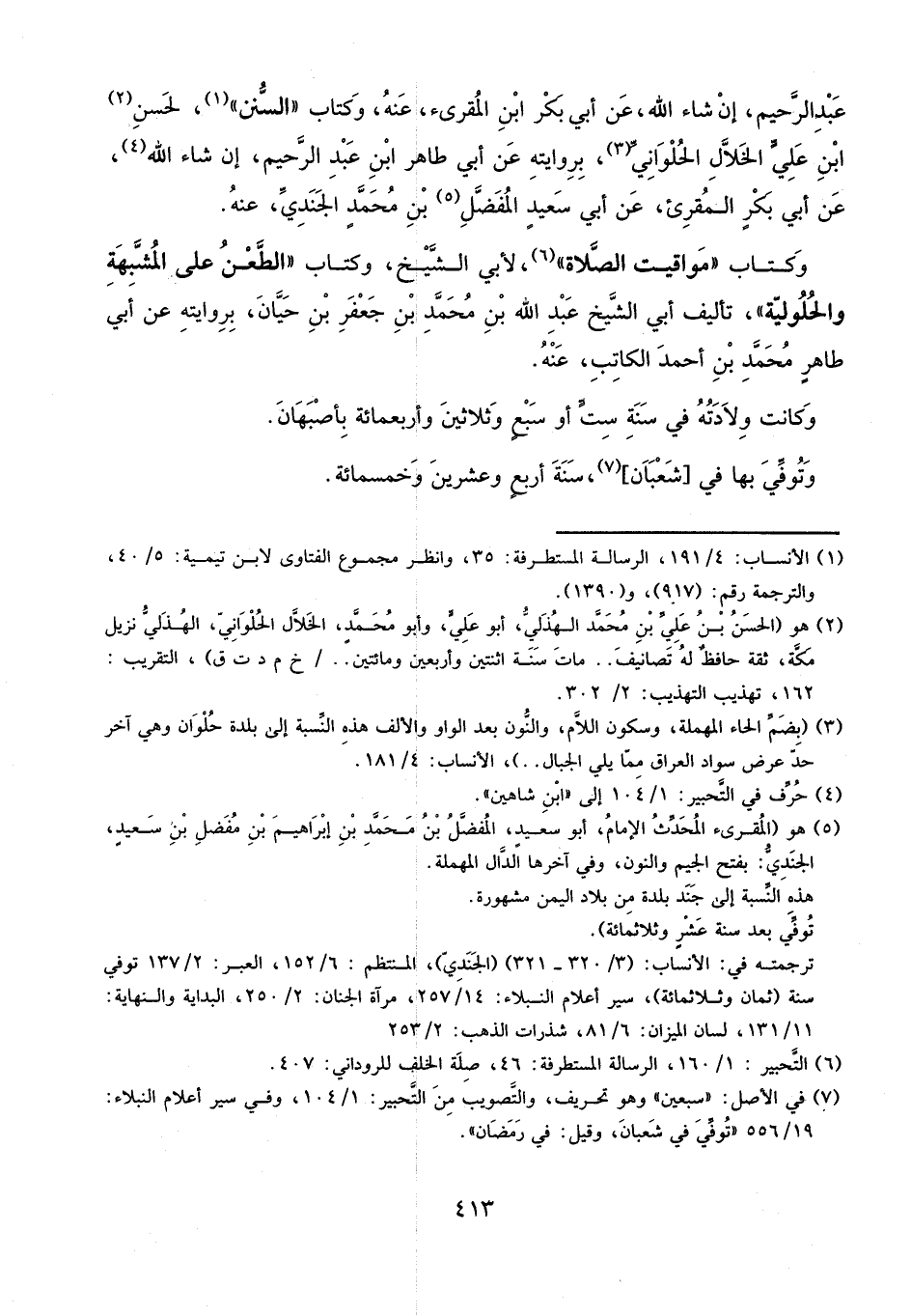 عبد الرحيم إن شاء الله، عن أبي بكر ابن المقرئ، عنه، وكتاب السنن لحسن بن علي الخلال الحلواني، بروايته عن أبي طاهر بن عبد الرحيم إن شاء الله، عن أبي بكر المقرئ، عن أبي سعيد المفضل بن محمد الجندي، عنه.