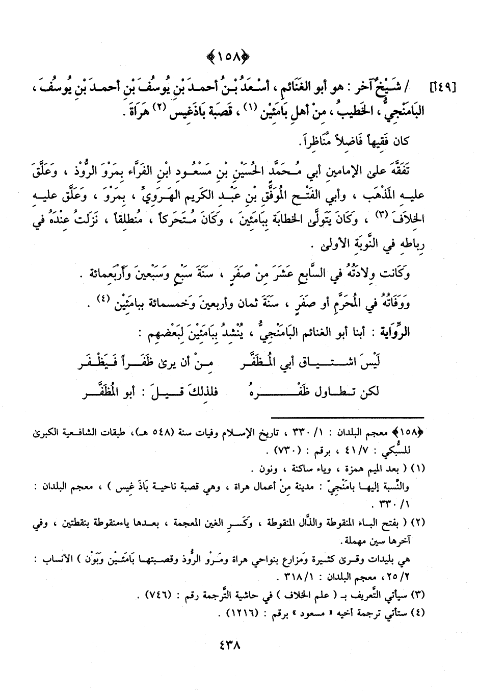 شيخ آخر: هو أبو الغنائم أسعد بن أحمد بن يوسف بن أحمد بن يوسف البامنجي الخطيب، من أهل بامئين، قصبة باذغيس هراة.