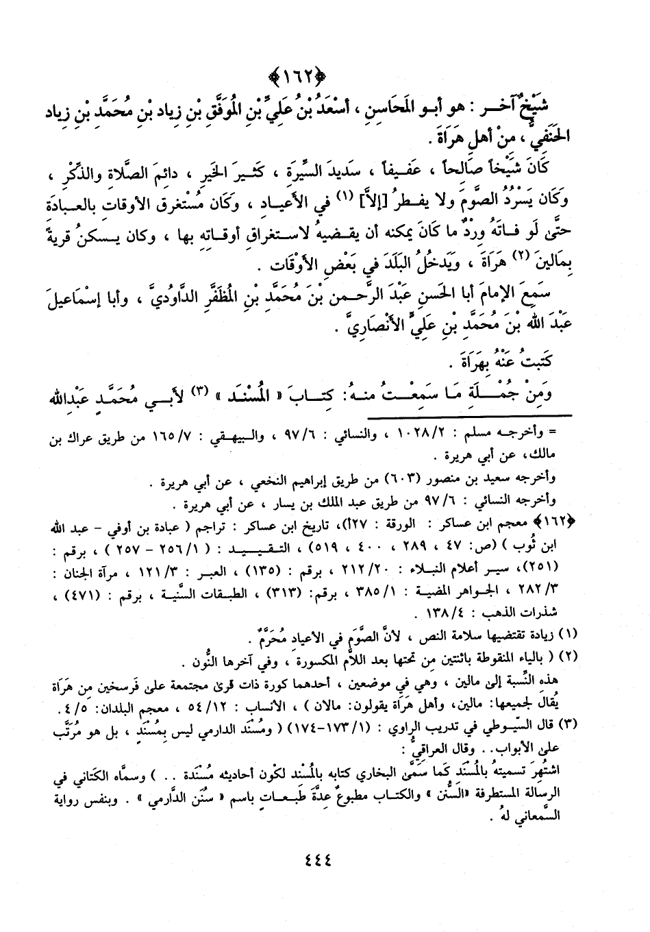 شيخ آخر: هو أبو المحاسن أسعد بن علي بن الموفق بن زياد بن محمد بن زياد الحنفي، من أهل هراة.