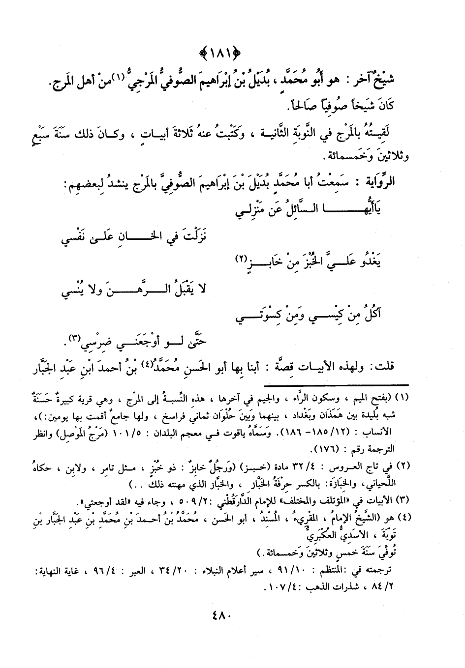 شيخ آخر: هو أبو محمد بديل بن إبراهيم الصوفي المرجي، من أهل المرج.