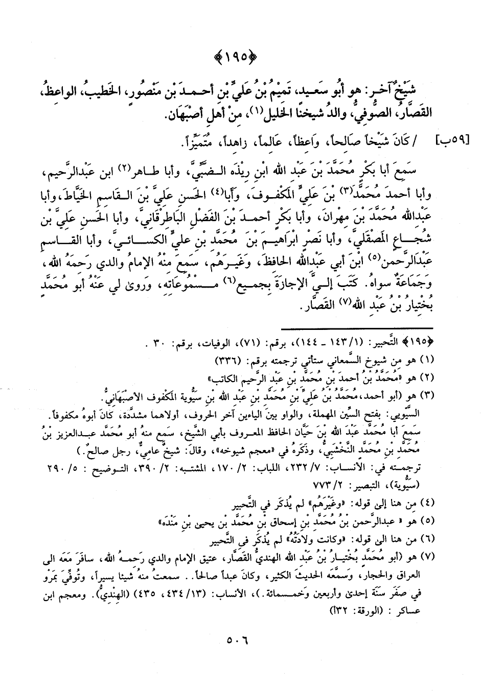 شيخ آخر: هو أبو سعيد تميم بن علي بن أحمد بن منصور الخطيب الواعظ القصار الصوفي، والد شيخنا الجليل، من أهل أصبهان.