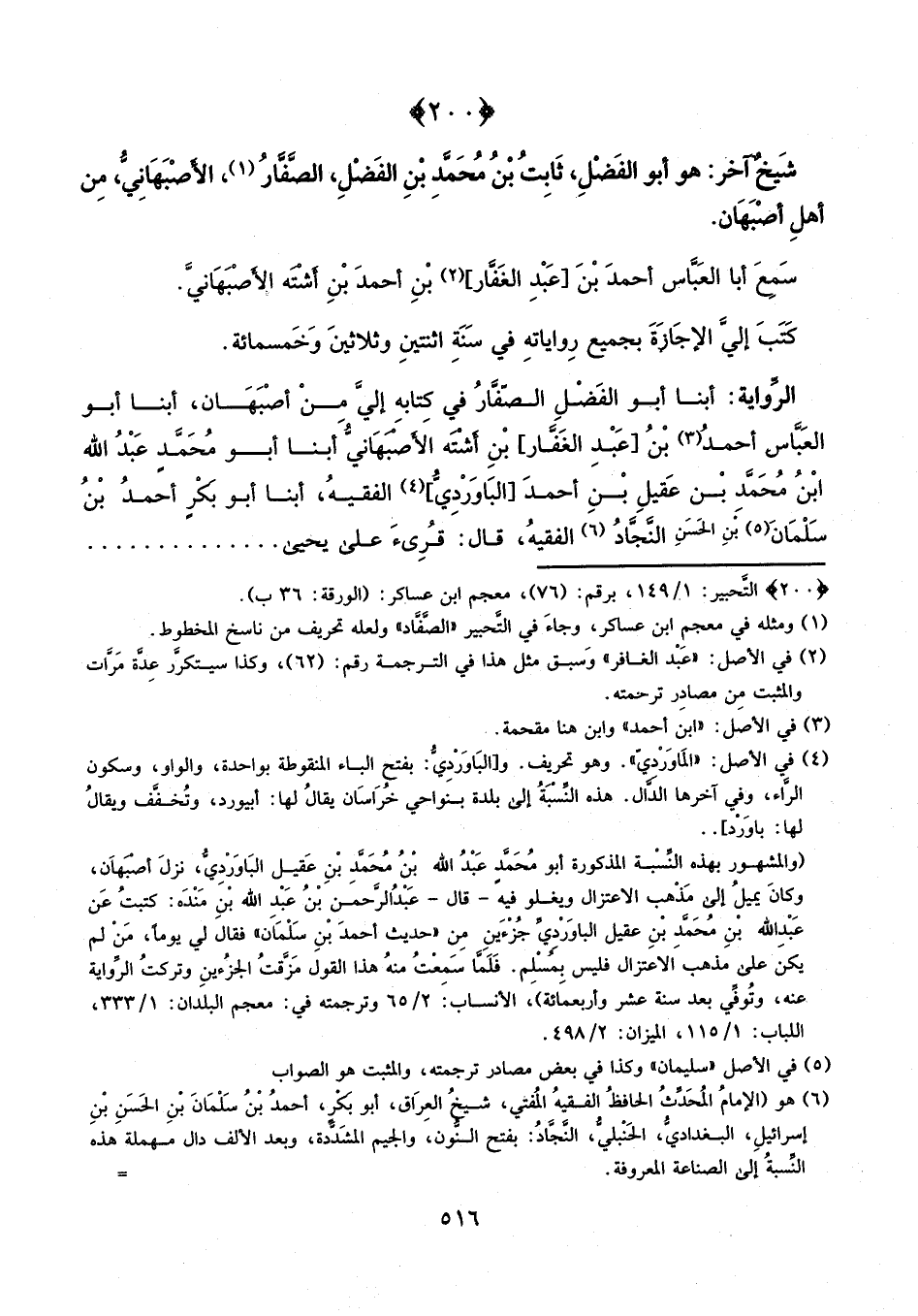 شيخ آخر: هو أبو الفضل ثابت بن محمد بن الفضل الصفار الأصبهاني، من أهل أصبهان.