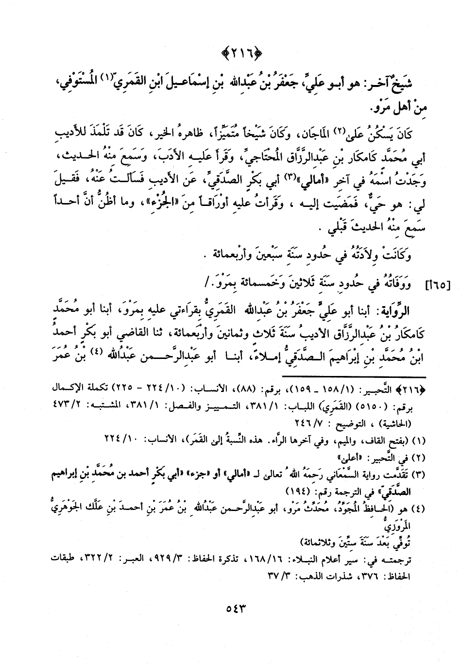 أبنا أَبُو عَلِيٍّ جَعْفَرُ بْنُ عَبْدِ اللَّهِ الْقَمَرِيُّ، بِقِرَاءَتِي عَلَيْهِ بِمَرْوَ، أبنا أَبُو مُحَمَّدٍ كَامْكَارُ بْنُ عَبْدِ الرَّزَّاقِ الأَدِيبُ سَنَةَ ثَلاثٍ وَثَمَانِينَ وَأَرْبَعِ مِائَةٍ، ثنا الْقَاضِي أَبُو بَكْرٍ أَحْمَدُ بْنُ مُحَمَّدِ بْنِ إِبْرَاهِيمَ الصَّدَقِيُّ، إِمْلاءً، أبنا أَبُو عَبْدِ الرَّحْمَنِ عَبْدُ اللَّهِ بْنُ عُمَرَ