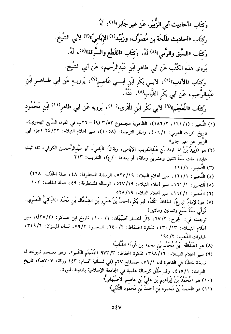 وكتاب أحاديث أبي الزبير عن غير جابر له، وكتاب أحاديث طلحة بن مصرف وزبيد الإيامي لأبي الشيخ.
