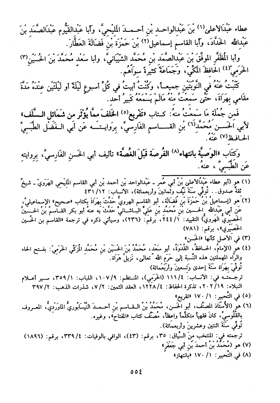كتبت عنه في النوبتين جميعا، وكنت أبيت في كل أسبوع ليلة أو ليلتين عنده مدة مقامي بهراة حتى سمعت منه ما لم يسمعه كبير أحد.