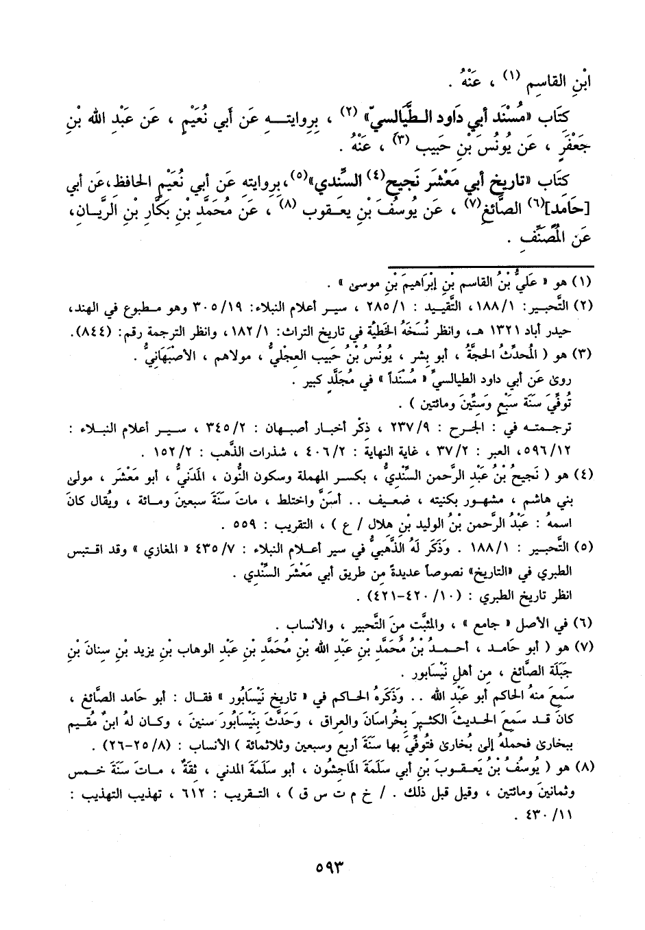 كتاب تاريخ أبي معشر نجيح السندي، بروايته عن أبي نعيم الحافظ، عن أبي حامد الصائغ، عن يوسف بن يعقوب، عن محمد بن بكار بن الريان، عن المصنف.
