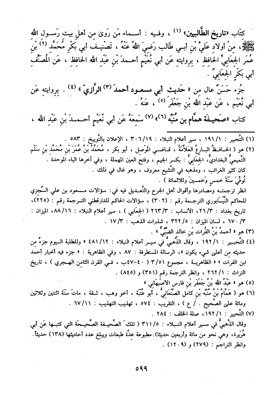كتاب تاريخ الطالبيين، وفيه: أسماء من روى من أهل بيت رسول الله، صلى الله عليه وسلم، من أولاد علي بن أبي طالب، رضي الله عنه، تصنيف أبي بكر محمد بن عمر الجعابي الحافظ، بروايته عن أبي نعيم أحمد بن عبد الله الحافظ، عن المصنف أبي بكر الجعابي.