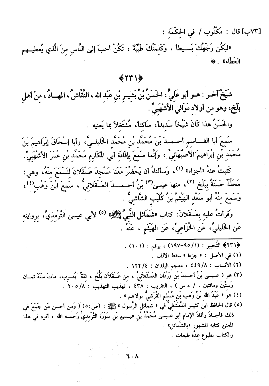 شيخ آخر: هو أبو علي الحسن بن بشير بن عبد الله النقاش المهاد، من أهل بلخ، وهو من أولاد موالي الأشهبي.