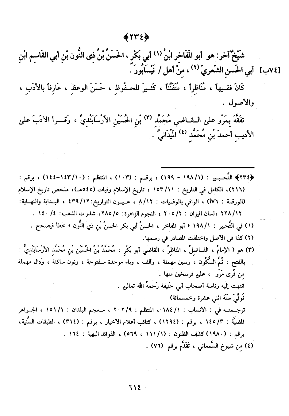 شيخ آخر: هو أبو المفاخر بن أبي بكر الحسن بن ذي النون بن أبي القاسم بن أبي الحسن الشعري، من أهل نيسابور.