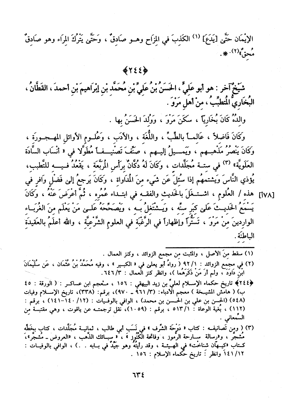 شيخ آخر: هو أبو علي الحسن بن علي بن محمد بن إبراهيم بن أحمد القطان البخاري المتطبب، من أهل مرو.