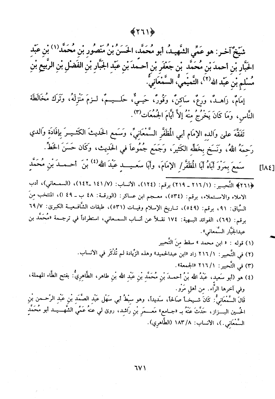 شيخ آخر: هو عمي الشهيد أبو محمد الحسن بن منصور بن محمد بن عبد الجبار بن أحمد بن محمد بن جعفر بن أحمد بن عبد الجبار بن الفضل بن الربيع بن مسلم بن عبد الله التميمي السمعاني