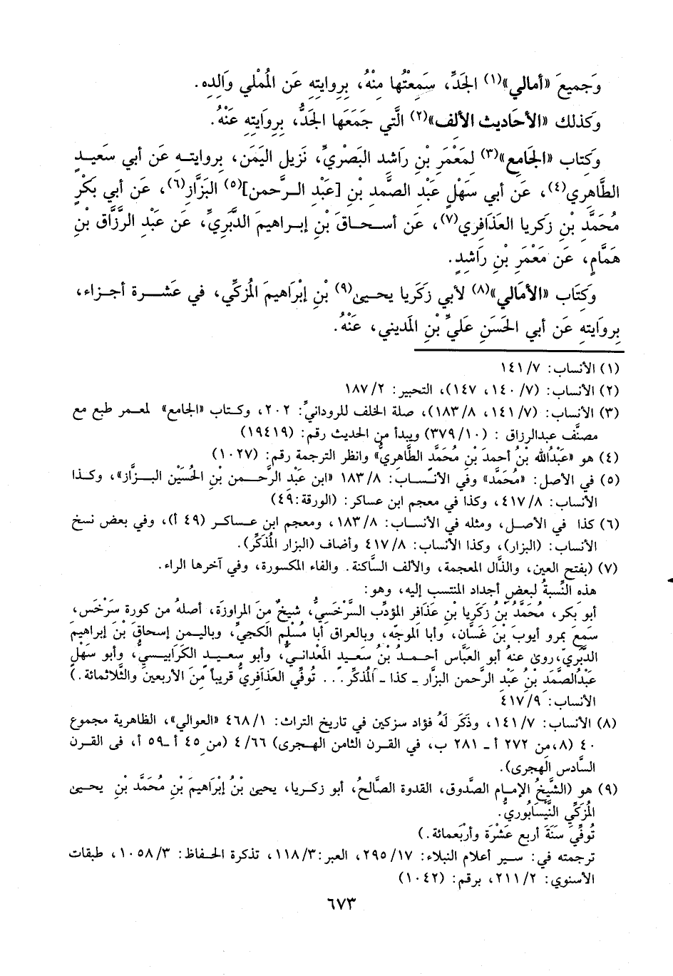 وكتاب الجامع لمعمر بن راشد البصري، نزيل اليمن، بروايته عن أبي سعيد الطاهري، عن أبي سهل عبد الصمد بن عبد الرحمن البزاز، عن أبي بكر محمد بن زكريا العذافري، عن إسحاق بن إبراهيم الدبري، عن عبد الرزاق بن همام، عن معمر بن راشد.