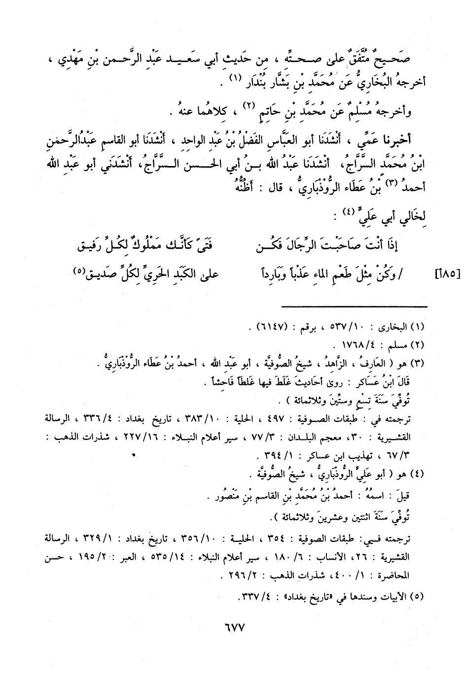 أخبرنا عمي، أنشدنا أبو العباس الفضل بن عبد الواحد، أنشدنا أبو القاسم عبد الرحمن بن محمد السراج، أنشدنا عبد الله بن أبي الحسن السراج، أنشدني أبو عبد الله أحمد بن عطاء الروذباري، قال: أظنه لخالي أبي علي: