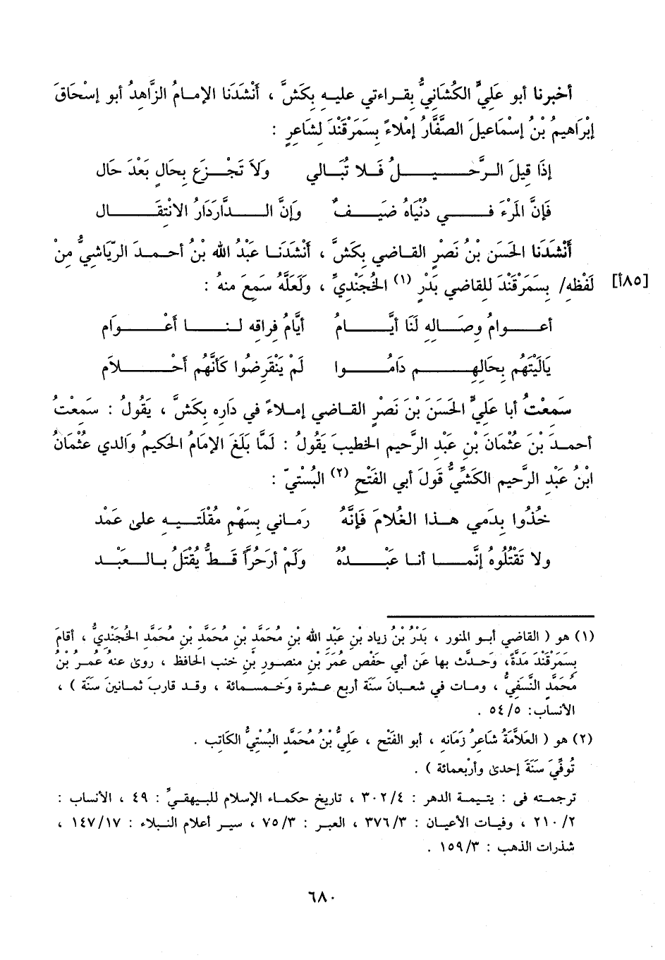 أخبرنا أبو علي الكشاني، بقراءتي عليه بكش، أنشدنا الإمام الزاهد أبو إسحاق إبراهيم بن إسماعيل الصفار، إملاء بسمرقند، لشاعر:
