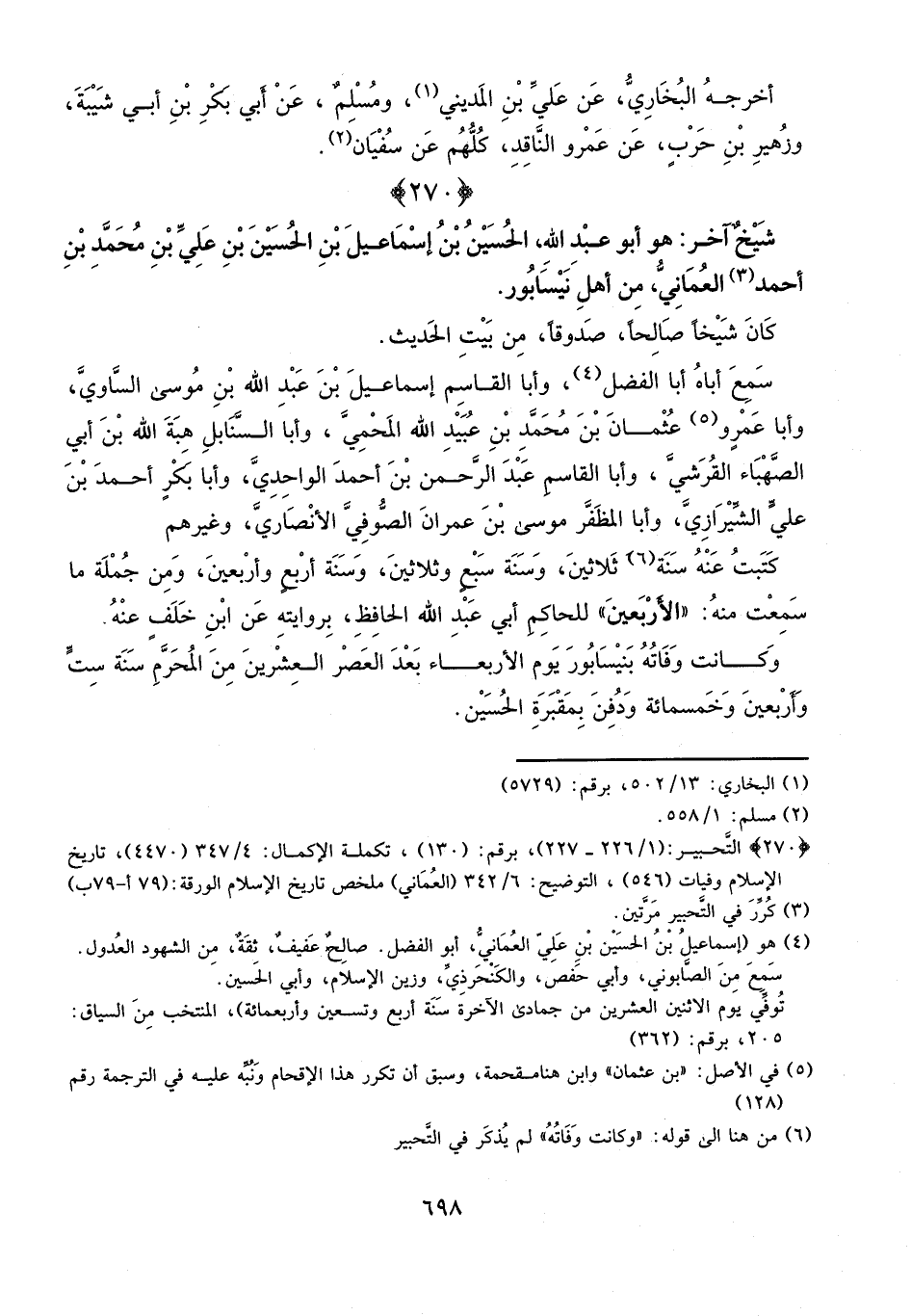 شيخ آخر: هو أبو عبد الله الحسين بن إسماعيل بن الحسين بن علي بن محمد بن أحمد العماني