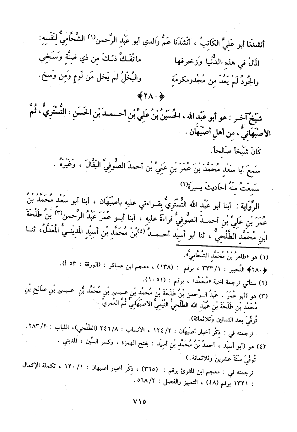 شيخ آخر: هو أبو عبد الله الحسين بن علي بن أحمد بن الحسن التستري، ثم الأصبهاني