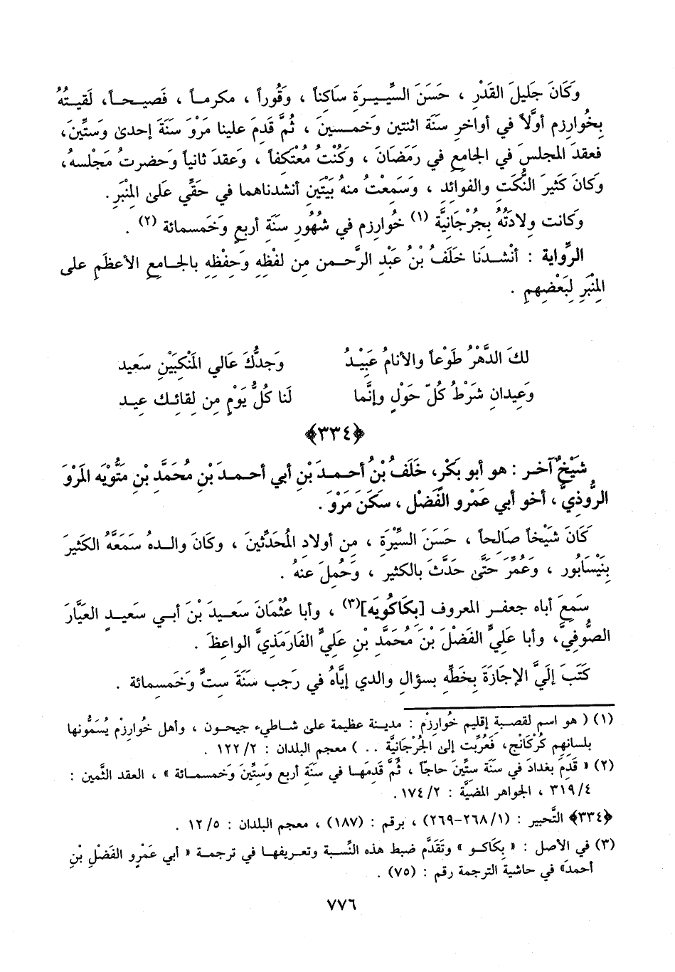 شيخ آخر: هو أبو بكر خلف بن أحمد بن أبي أحمد بن محمد بن متويه المروالروذي أخو أبي عمرو الفضل