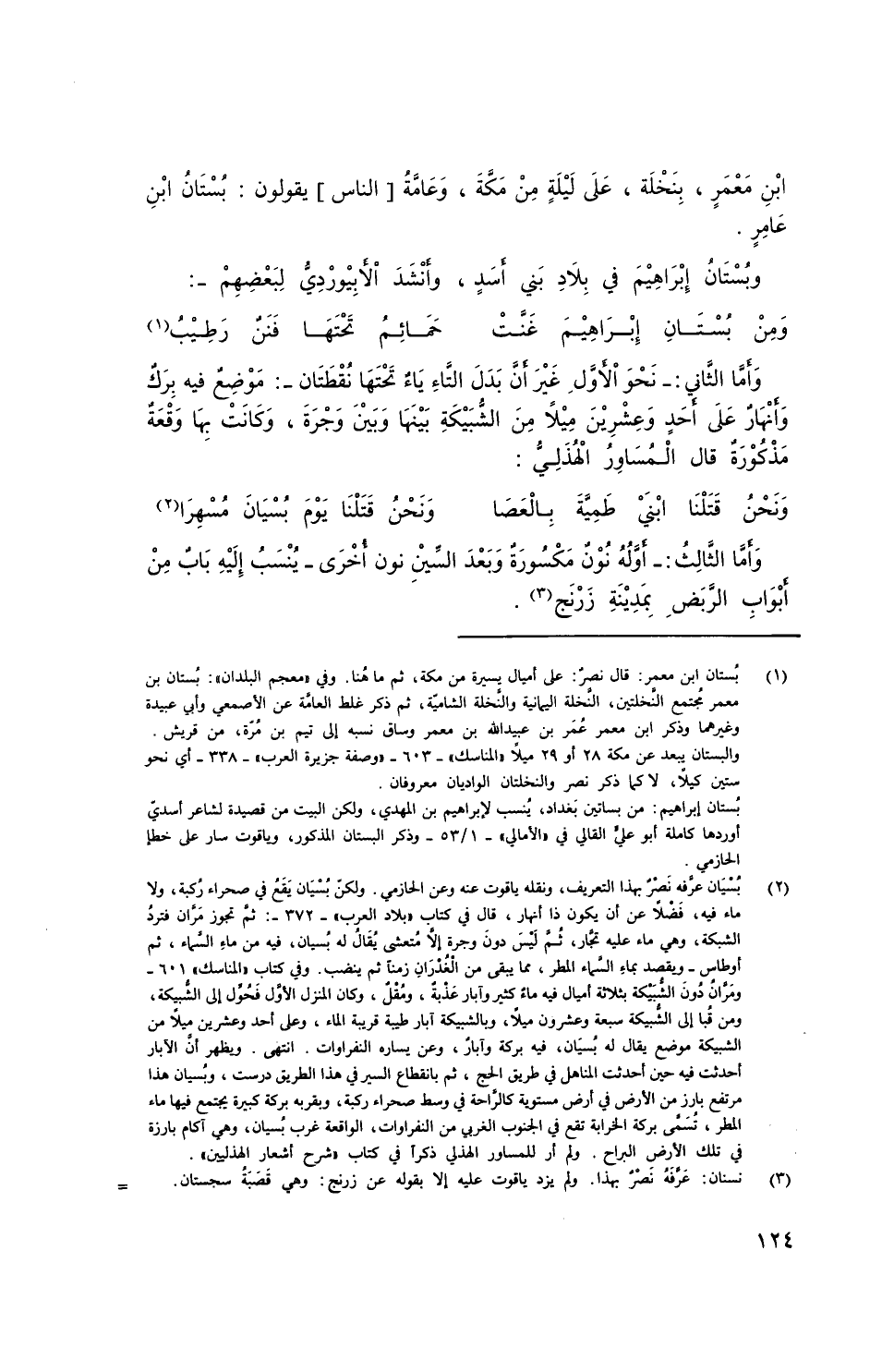 ابن معمر، بنخلة، على ليلة من مَكَّة، وعامة [الناس] يقولون: بُستان ابن عامرٍ.