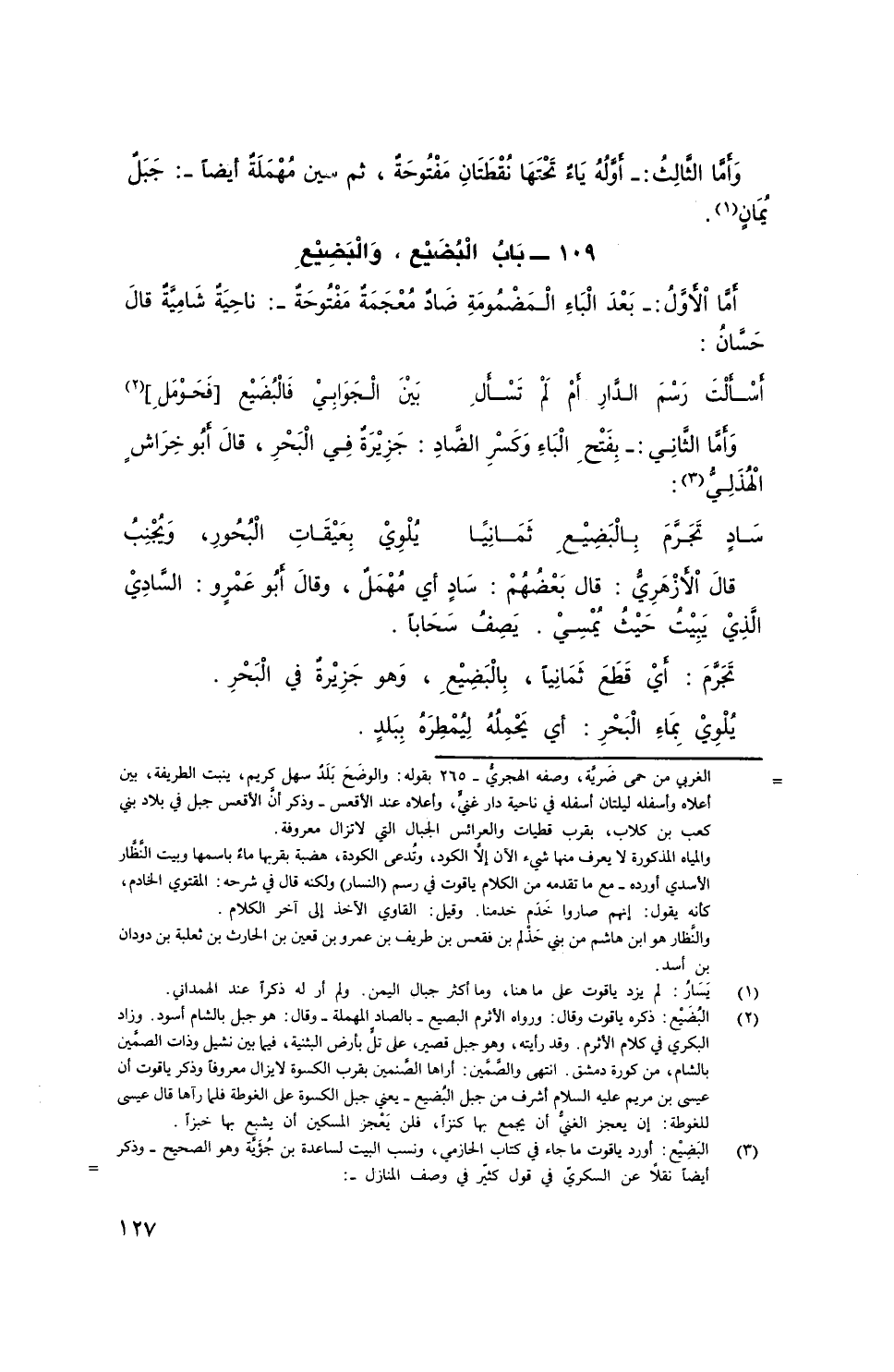 أما اْلأَوَّلُ: - بعد الباء المَضْمُومَة ضادٌ معجمة مَفْتُوحةٌ -: ناحيةٌ شامية قال حسَّان: