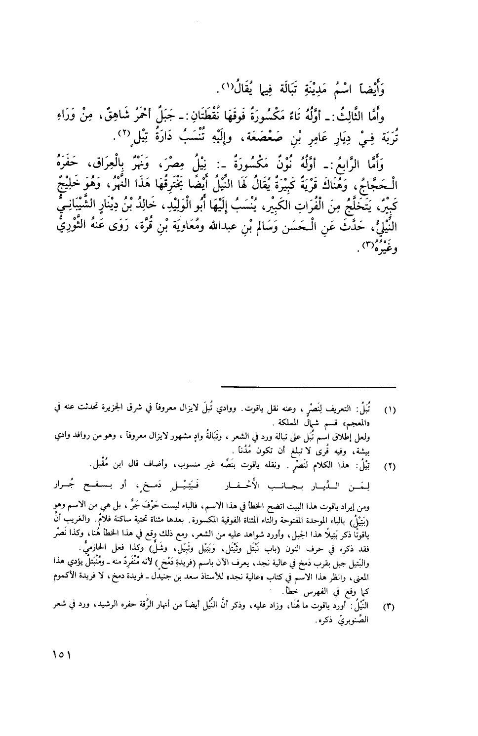 وأما الرَّابع: - أوله نُوْن مَكْسُورَة -: نيل مصر، ونهر العراق، حفرهُ الحجاج، وهُناك قَرْيَة كبيرة يُقَالُ لها النيل أيضاً يخترقها هذا النهر، وهو خليجٌ كبيرٌ، يتخلجُ من الفرات الكبير، يُنْسَبُ إليها أَبُو الوليد، خالد بن دينار الشيباني النيلي، حدث عن الحسن وسالم بن عبد الله ومُعاوية بن قُرة، روى عنه الثوري وغيرهُ.