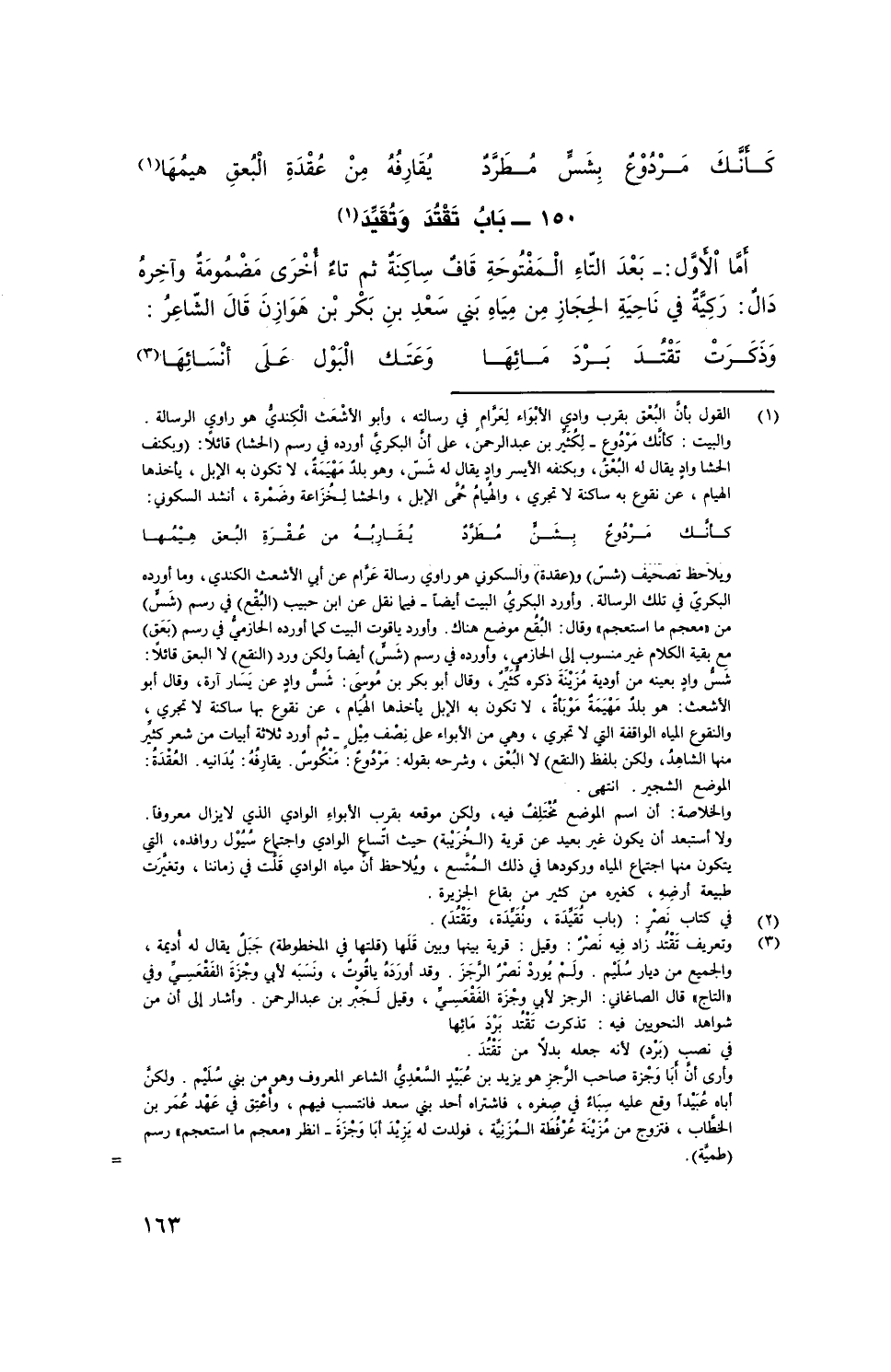 وَذَكَرَتْ تَقْتُدَ بَرْدَ مَائِهَا ... وَعَتَك الْبَوْل عَلَى أَنْسَائِهَا
