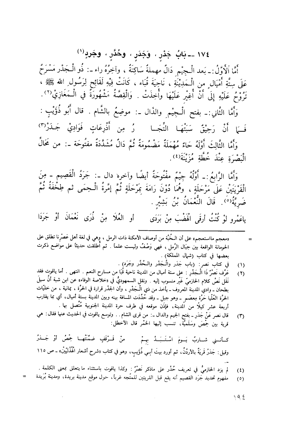 وأما الرَّابع: - أوله جيم مَفْتُوحةٌ أيضاً وآخره دال -: جردُ القصيم - من القريتين على مرحلة. وهُما دون رامة بمرحلة ثُمَّ إمرة الحمى ثُمَّ طخفة ثُمَّ ضرية. قال النُعمان بن بشير.