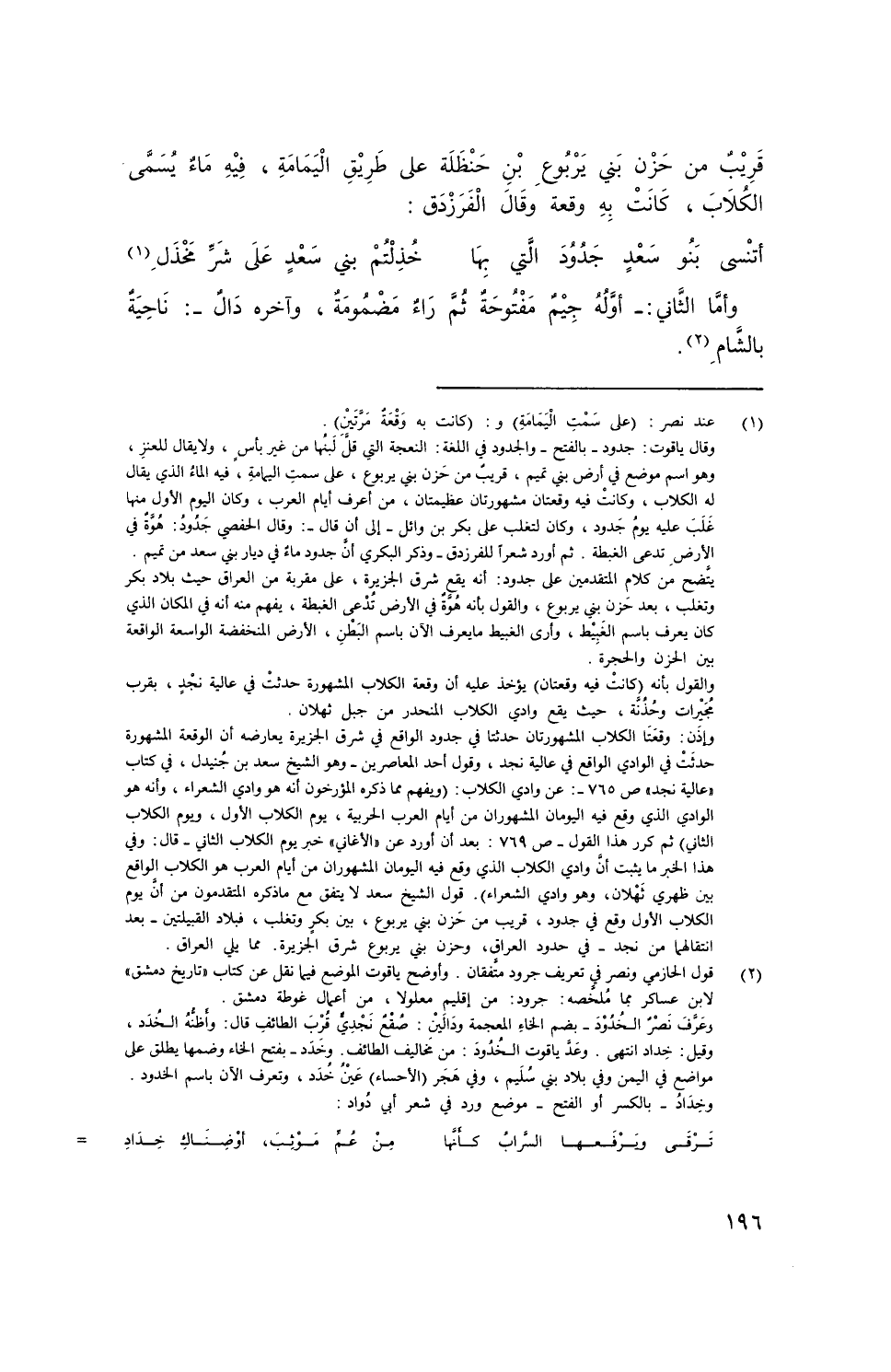 قريبٌ من حزن بني يربوع بن حنظلة على طريق اليمامة، فيه ماءٌ يُسمى الكلاب، كانت به وقعة وقال الْفَرَزْدَق: