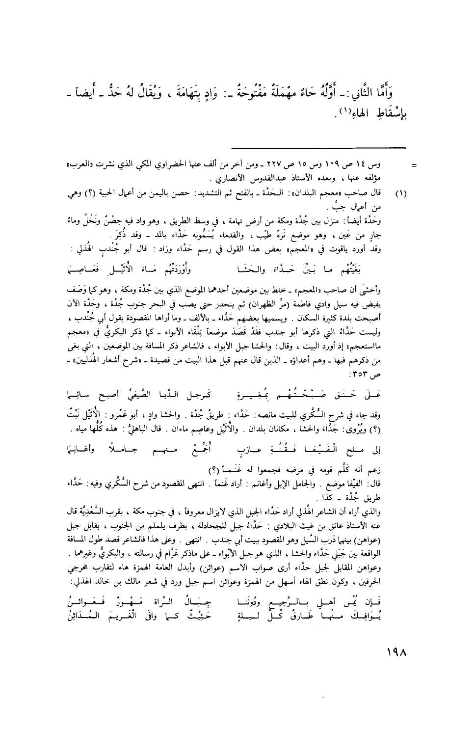 وأما الثَّاني: - أوله حاءٌ مَفْتُوحةٌ -: وادٍ بتهامة، ويُقَالُ له حد - أيضاً - بإسقاط الهاءِ.