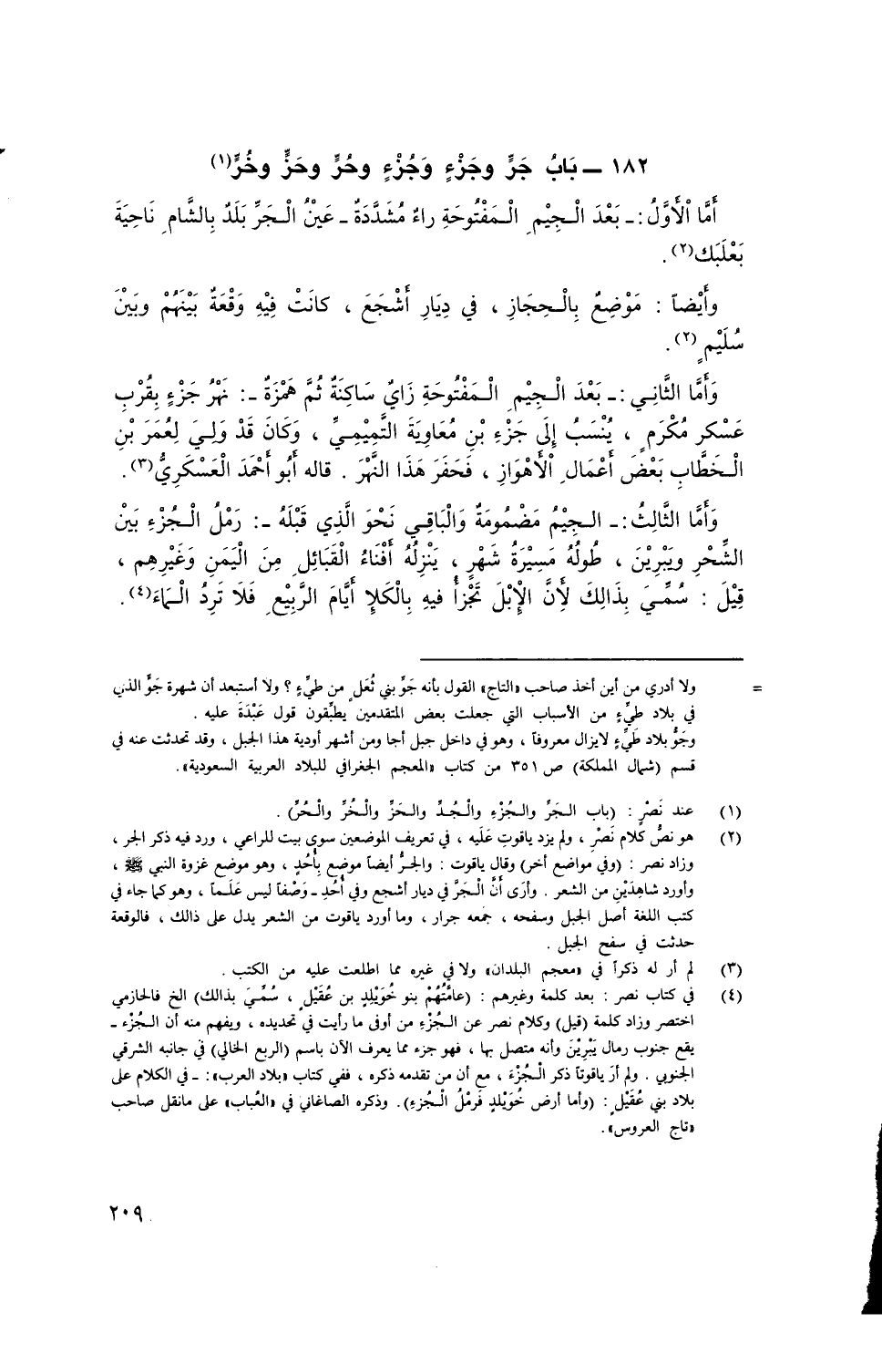 أما اْلأَوَّلُ: - بعد الجيم المَفْتُوحةٌ راءٌ مُشَدَّدَة - عين الجر بلدٌ بالشام ناحية بعلبك.