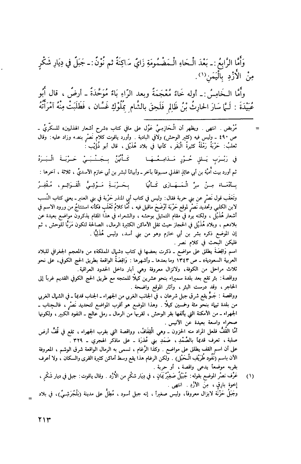 وأما الخامس: - أوله خاء معجمة وبعد الراء باء مُوْحَّدَة - أرض، قال أَبُو عُبيدة: لما سار الحارثُ بن ظالم فلحق بالشام بملوك غسَّان، فطلبت منه امرأته