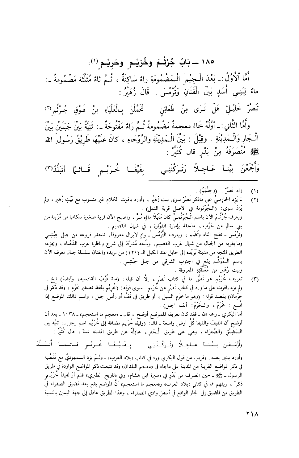 185 - بَابُ جُرْثُمَّ وخُرَيْمٍ وحَرِيْمٍ
