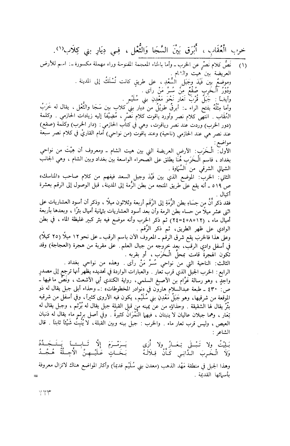 خرب العقاب، أبرق بين السجا والثُّعل، في دِيَارِ بني كلاب.
