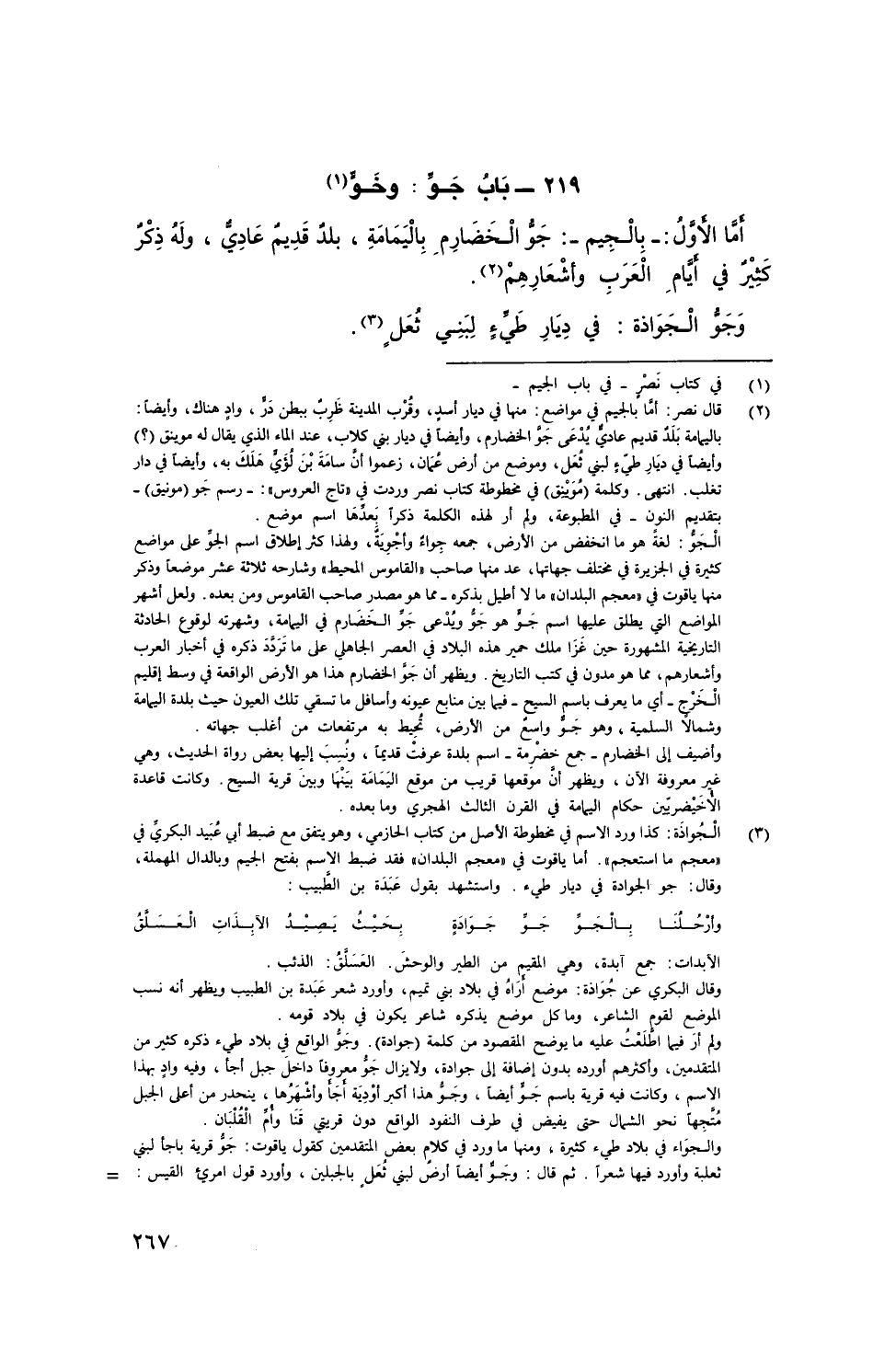أما اْلأَوَّلُ: - بالجيم -: جو الخضارم باليمامة، بلدٌ قديم عادي، ولهذ كر كثير في أيام العرب وأشعارهم.