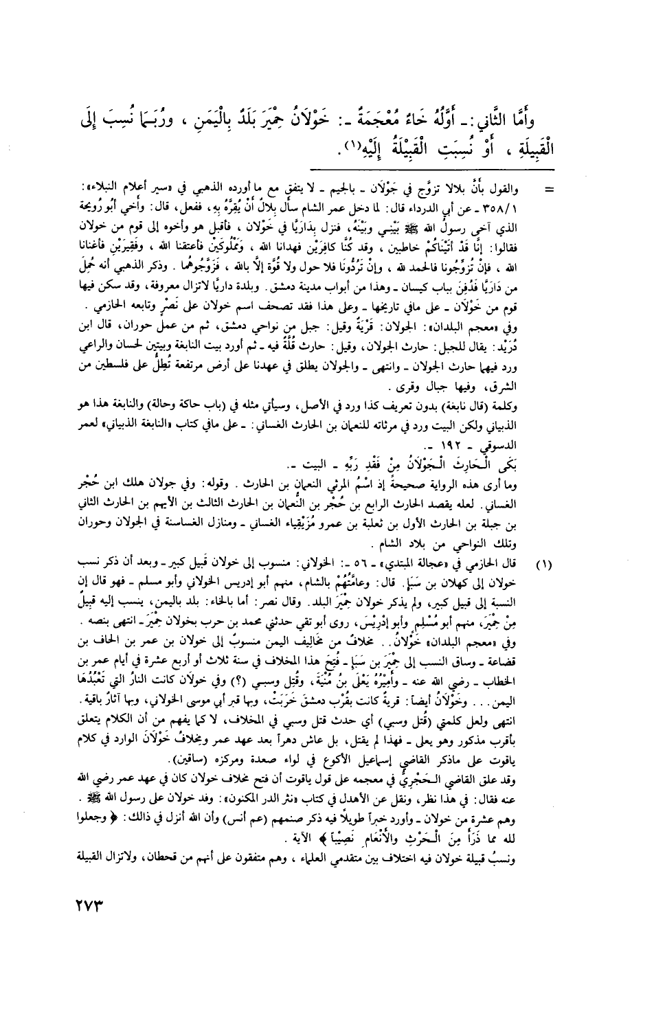 وأما الثَّاني: - أوله خاءٌ معجمة -: خولان حمير بلدٌ باليمن، وربما نُسب إلى القبيلة، أو نُسبت القبيلة إليه.