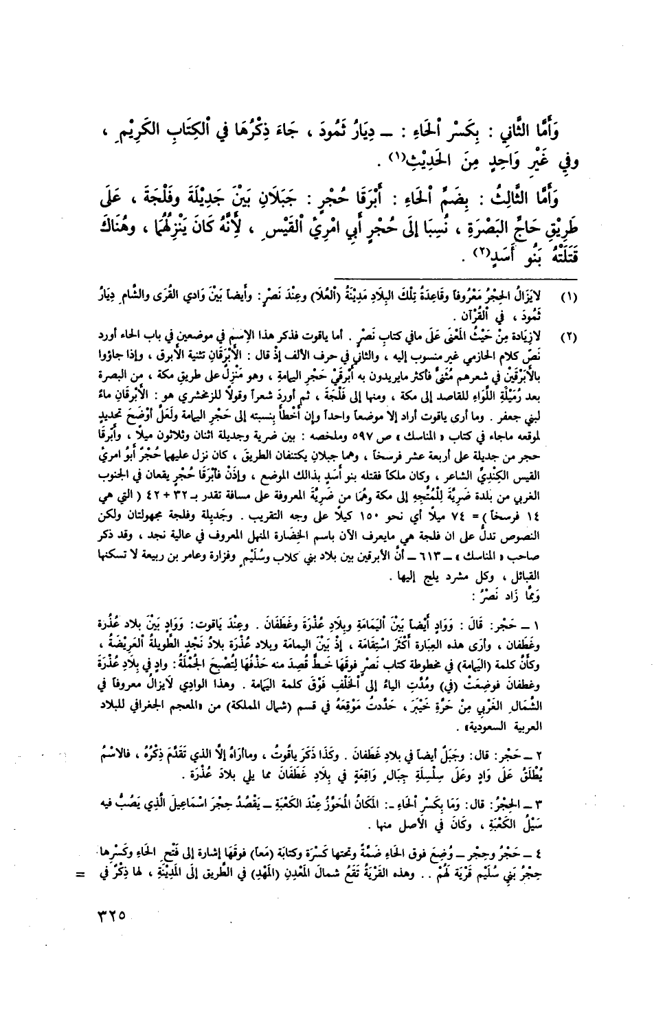 وأما الثَّاني: - بِكَسْرِ الحاء: - دِيَارِ ثمود، جاء ذكرها في الكتاب الكريم، وفي غير واحد من الحديث.