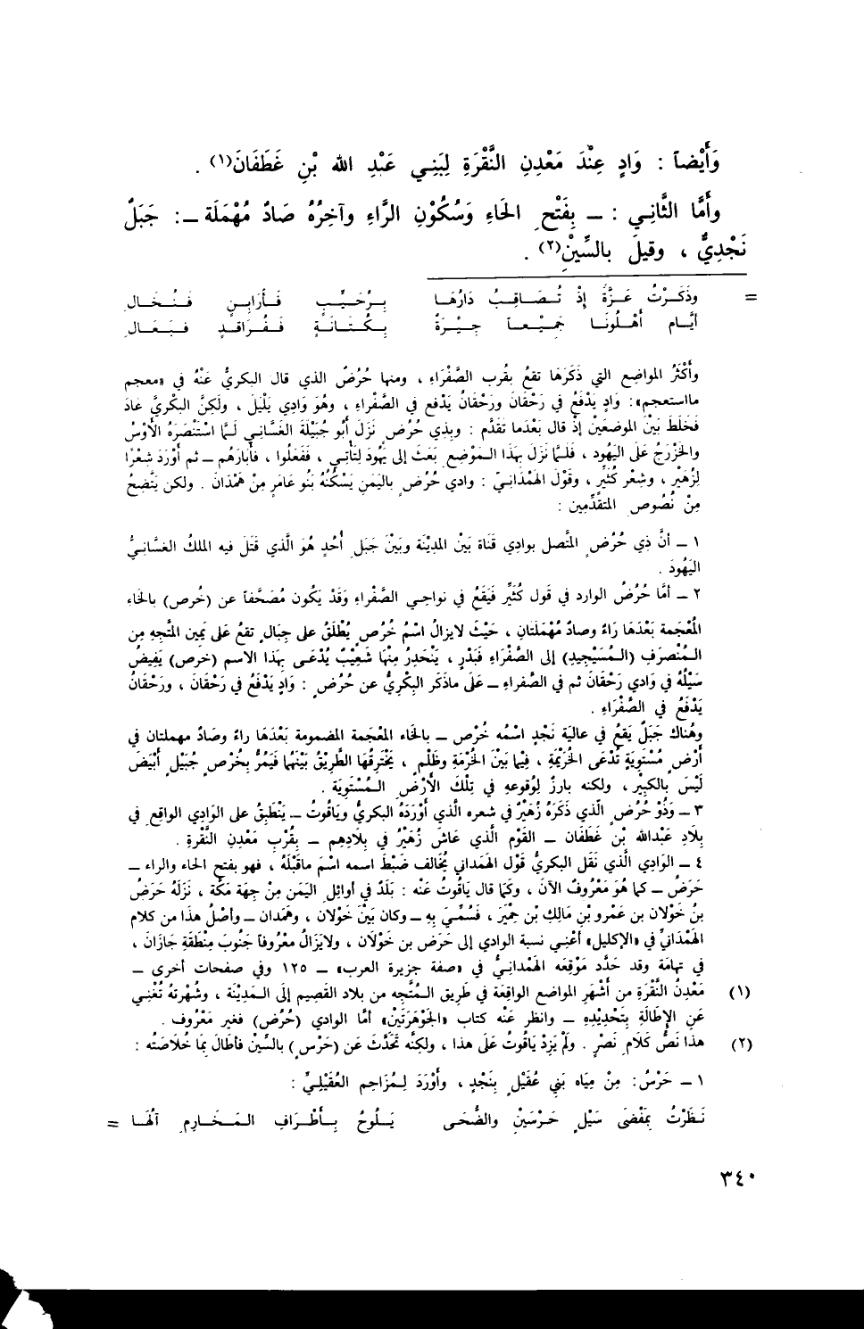 وأما الثَّاني: - بِفَتْحِ الحاء وسُكون الراء وآخره صادٌ مُهْمَلَة -: جبلٌ نجدي، وقيل بالسين.