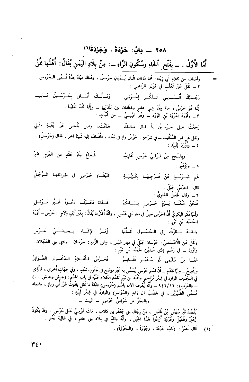 أما اْلأَوَّلُ: - بِفَتْحِ الحاء وسكون الراء -: من بلاد الْيَمَن يُقَالُ: أهلها ممن