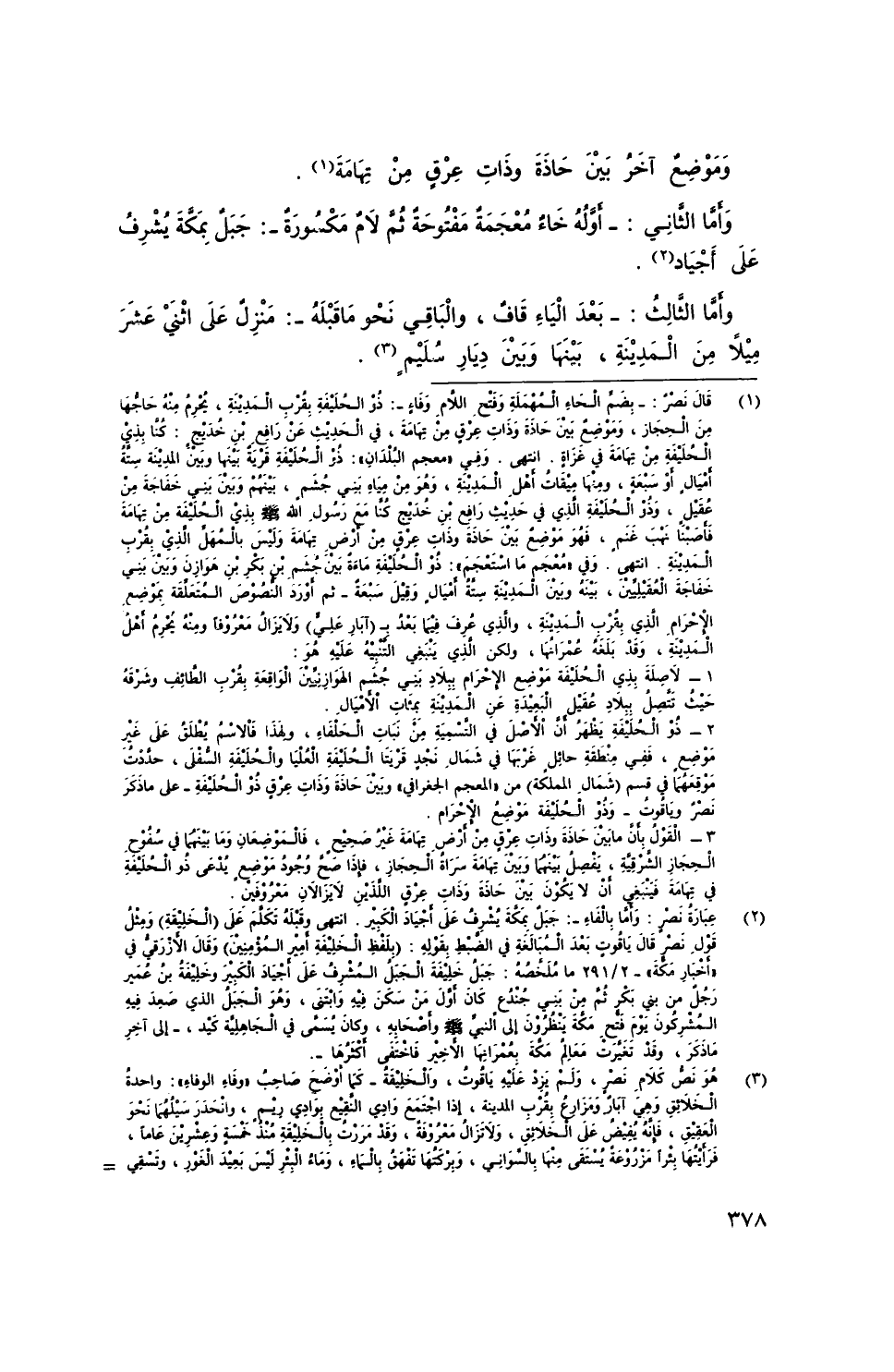 وأما الثَّالِثُ: - بعد الياء قاف، والباقي نحو ما قبله -: منزلٌ على اثني عشر ميلاً من المدينة، بينها وبين دِيَارِ سُليم.