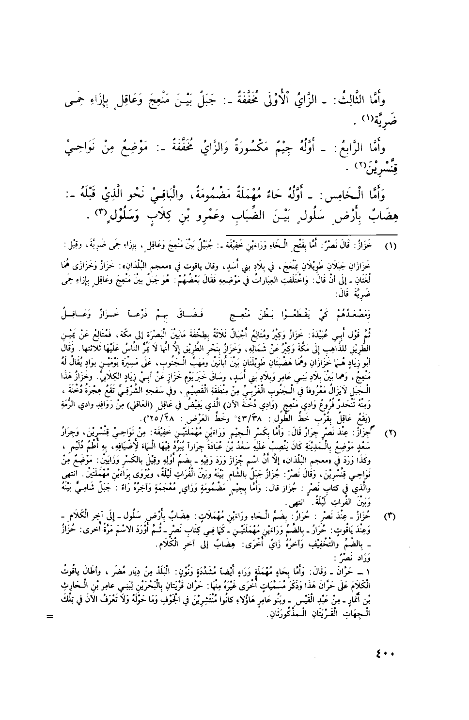 وأما الثَّالِثُ: - الزاي اْلأَوَّلُى مُخَفَّفَة -: جبل بين منعج وعاقل بإزاء حمى ضرية.